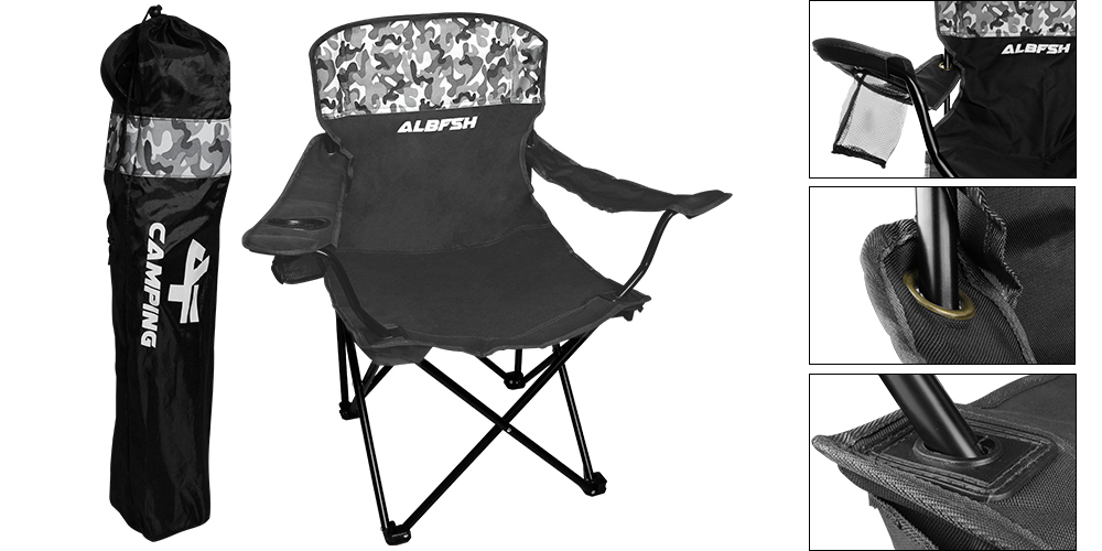 O tecido da cadeira é feito em poliéster oxford reforçado e a sua estrutura é toda em aço esmaltado. Conta com um sistema de montagem/desmontagem bastante simples e intuitivo.